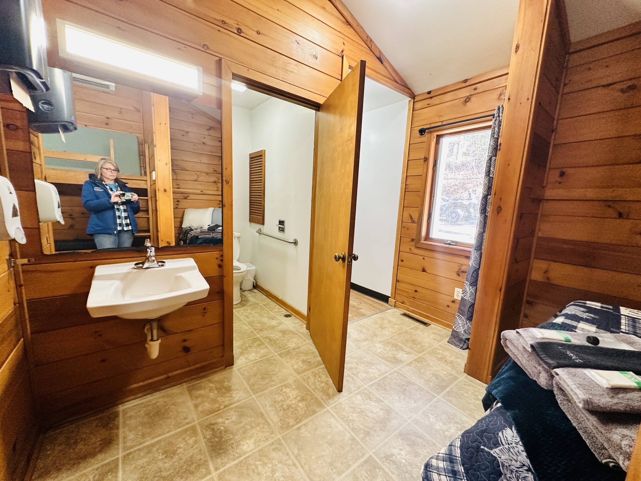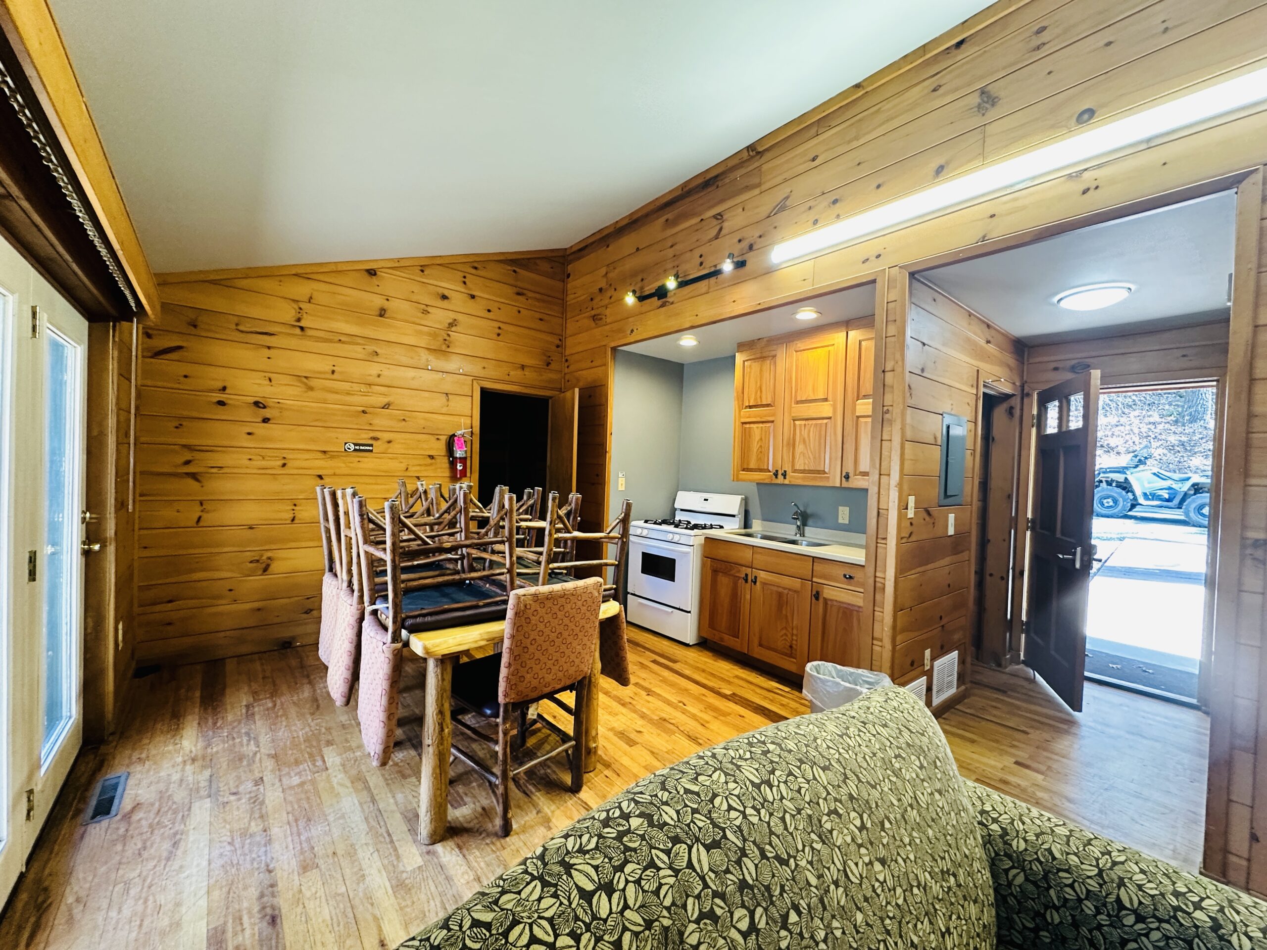2 Premier Cabins (Each sleeps 16): Each cabin is ADA accessible, is 2 bedrooms/2 bath with a shared full kitchen, dining, and seating area.  Each kitchen is complete with stove, fridge, sink and microwave, toaster and single cup Keurig.