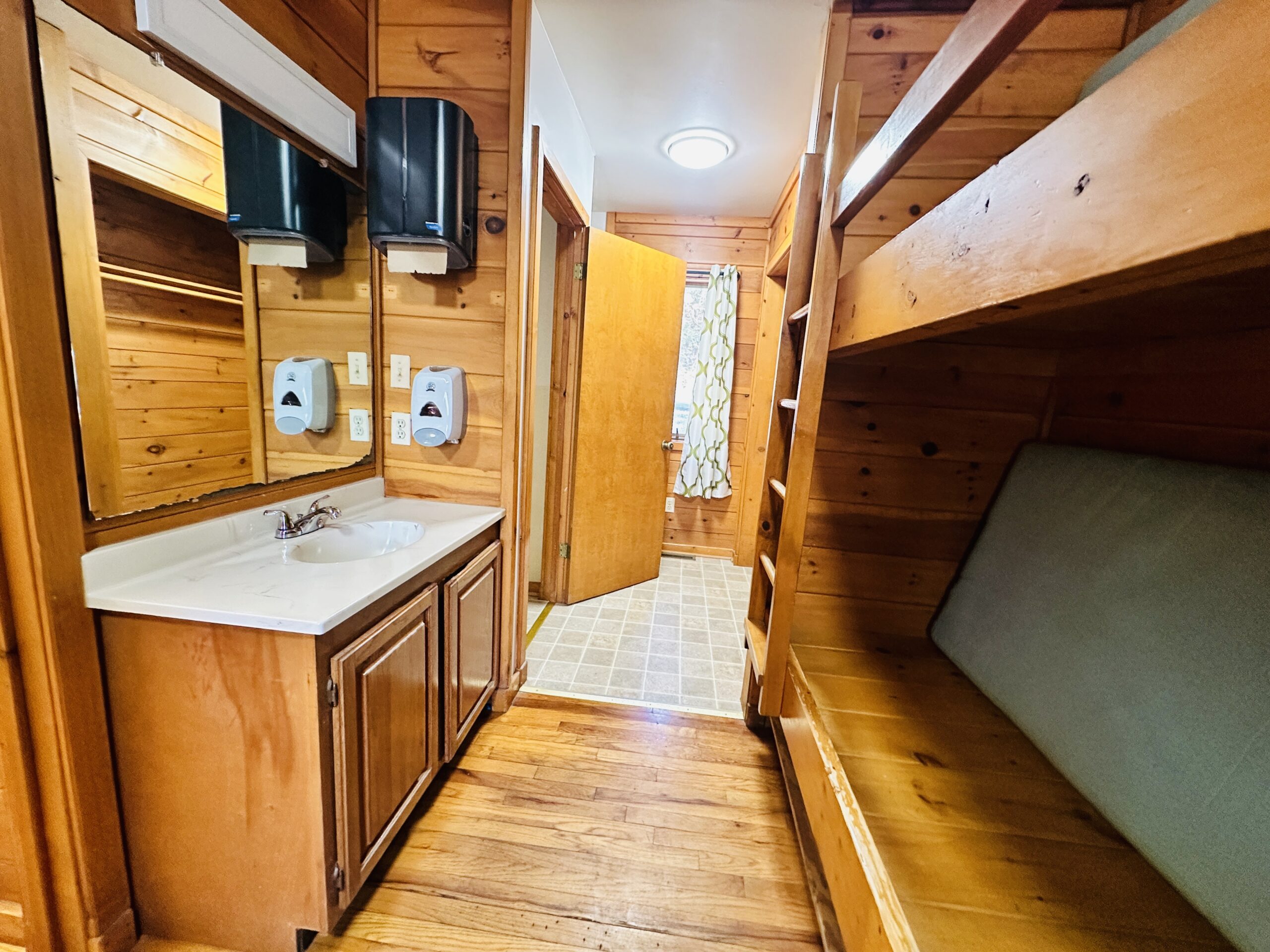 9 Standard Cabins (Each sleeps 12):  Each cabin is 2 bedroom/2 bathroom with a shared kitchenette and dining area in the center.  Each kitchenette is complete with a mini fridge, sink and microwave.